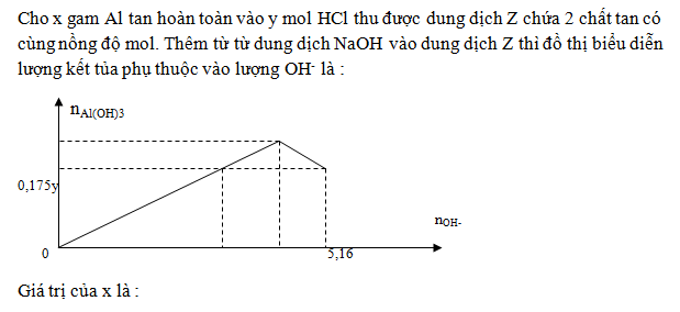 => nAlCl3 = nHCl => n = y – 3n => y = 4n (1)