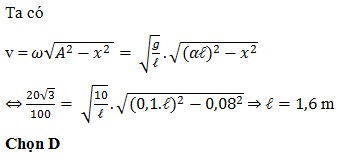 = 0,1 rad. Khi đi qua vị trí có li độ s = 8 cm thì có tốc độ 20