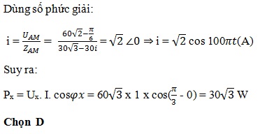 , C = 10-3/ 3π(F). Công suất tiêu thụ của mạch hộp X bằng