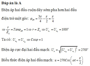 = 100cos(ωt)(V); điện áp hai đầu cuộn dây có dạng