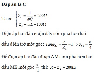 . Điểm M nằm giữa R và cuộn dây. Điều chỉnh R sao cho điện áp giữa hai đầu đoạn mạch AM sớm pha