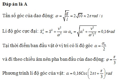 Con lắc đơn gồm quả cầu nhỏ treo vào sợi dây dài 25(cm). Kéo vật để dây lệch góc 0,08(rad) rồi truyền cho vật vận tốc v=4π
