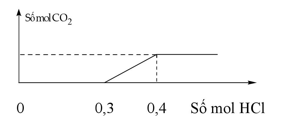 Nhỏ rất từ từ dung dịch HCl vào dung dịch chứa a mol KOH, b mol NaOH và c mol K2CO3, kết quả thí nghiệm được biểu diễn trên đồ thị sau: