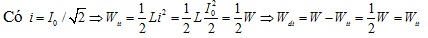 Mạch dao động đang thực hiện dao động điện từ tự do. Tại thời điểm mà cường độ dòng điện qua cuộn cảm có giá trị bằng I0 /