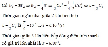 . Thời gian giữa ba lần liên tiếp dòng điện trên mạch có giá trị lớn nhất là