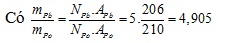 và biến đổi thành hạt nhân Pb. Tại thời điểm t tỉ lệ giữa số hạt nhân Pb và số hạt nhân Po trong mẫu là 5. Tại thời điểm này tỉ số khối lượng Pb và khối lượng Po là