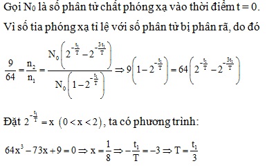 tia phóng xạ, trong t2 =2t1 giờ tiếp theo phóng ra n2 tia phóng xạ. Biết n2 =