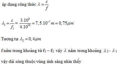 Một dải sóng điện từ trong chân không có tần số từ 4,0.1014 Hz đến 7,5.1014 Hz. Biết tốc