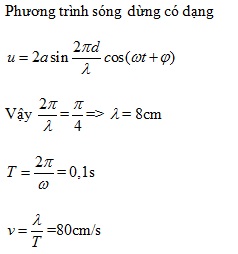 Một sóng dừng truyền trên một sợi dây theo phương trình : u = 2sin ( x ) cos(20π t + ) (cm ) .