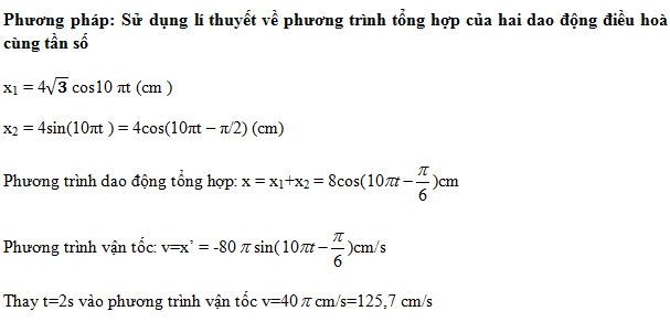 cos10 πt (cm ) và x2 = 4sin(10π t )(cm). Vận tốc của vật khi t = 2 s là