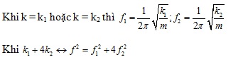 Vật A có kích thước nhỏ khối lượng m, khi mắc vật A với lò xo có độ cứng k1 thì tạo thành con lắc lò xo có tần số riêng là f1 . Khi mắc vật A với lò xo có độ cứng k2 thì tần số riêng tương ứng là f2 . Nếu mắc vật A với lò xo có độ cứng k = k1 + 4k2 thì tần số riêng f của con lắc lò xo A được tính theo biểu thức