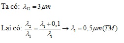 Trong thí nghiệm Y –âng về giao thoa ánh sáng, khoảng cách giữa hai khe sáng là 1mm, khoảng cách từ mặt phẳng chứa hai khe đến màn quan sát là 2,5m. Ánh sáng chiếu đến khe gồm hai ánh sáng đơn sắc trong vùng ánh sáng khả kiến có bước sóng λ1 và λ2 = λ1 + 0,1 µm. Khoảng cách gần nhất giữa hai vân sáng cùng màu với vân trung tâm là 7,5 mm . Giá trị của λ1 là