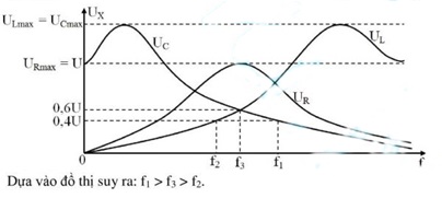 Đặt điện áp xoay chiều có giá trị hiệu dụng U không đổi, tần số f thay đổi được vào hai đầu đoạn mạch gồm điện trở thuần R , cuộn cảm thuần L và tụ điện C mắc nối tiếp .Điều chỉnh giá trị của f : khi f = f1 thì điện áp hiệu dụng giữa hai đầu tụ điện có giá trị bằng 0,4U;khi f = f2 thì điện áp hiệu dụng giữa hai đầu cuộn cảm có giá trị bằng 0,4U; khi f = f3 thì điện áp hiệu dụng giữa hai đầu cuộn cảm và điện áp hiệu dụng giữa hai đầu tụ điện có cùng giá trị bằng 0,6U . Sắp xếp đúng theo thứ tự giảm dần của tần số là