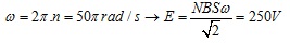 Một khung dây dẫn phẳng, hình chữ nhật, diện tích 90 cm2 , gồm 500 vòng dây, quay đều với vận tốc độ 25 vòng/ giây quanh một trục cố định ∆ trong từ trường đều có độ lớn cảm ứng từ bằng 0,05T. Biết ∆ nằm trong mặt phẳng khung dây và vuông góc với