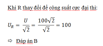 Đặt điện áp u = 200cosωt(V) vào hai đầu đoạn mạch R, L, C mắc nối tiếp. Độ tự cảm và điện dung không đổi. Điều chỉnh R để công suất trên mạch đạt giá trị cực đại; điện áp hiệu dụng hai đầu điện trở khi đó là