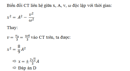 Con lắc lò xo gồm vật có khối lượng m, lò xo có độ cứng k được kích thích dao động với biên độ A. Khi đi qua vị trí cân bằng tốc độ của vật là v0. Khi tốc độ của vật là v0/3 thì nó ở li độ