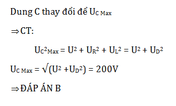 V vào 2 đầu đoạn mạch gồm cuộn dây có điện trở thuần nối tiếp với tụ C có điện dung thay đổi được. Cho C thay đổi đến khi điện áp hiệu dụng 2 đầu tụ điện đạt cực đại UCmax thì điện áp hiệu dụng hai đầu cuộn dây là UD = 100V. Giá trị UCmax bằng