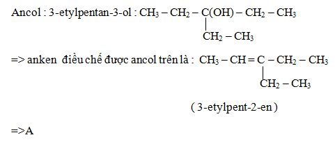 Anken thích hợp để điều chế 3-etylpentan-3-ol bằng phản ứng hiđrat hóa là