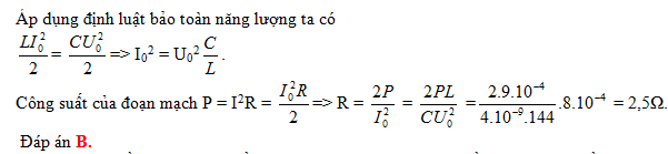 Mạch dao động gồm cuộn dây có độ tự cảm L = 8.10-4 H và tụ điện có điện dung C = 4 nF. Vì cuộn dây có điện trở thuần nên để duy trì dao động của mạch với hiệu điện thế cực đại giữa hai bản tụ là 12V, người ta phải cung cấp cho mạch một công suất P = 0,9 mW. Điện trở của cuộn dây có giá trị