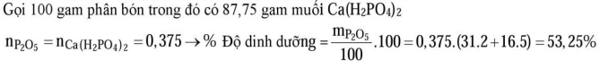 Một loại supephotphat kép có chứa 87,75% muối canxi đihiđrophotphat còn lại là các chất không chứa photpho. Độ dinh dưỡng của loại phân bón này là