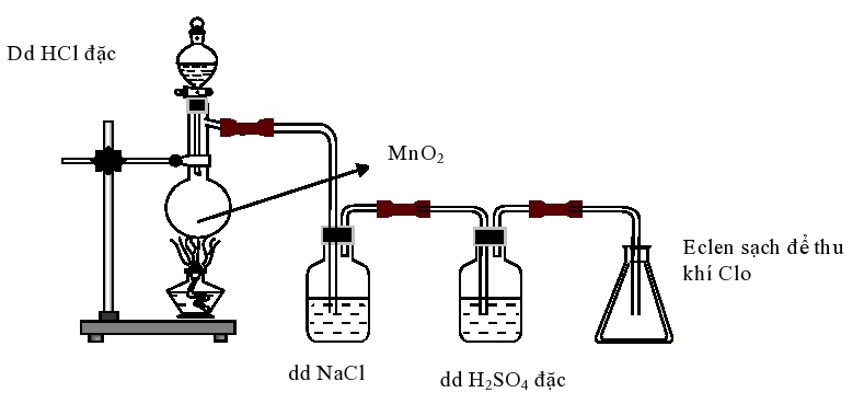 Cho Hình vẽ mô tả sự điều chế Clo trong phòng Thí nghiệm như sau: