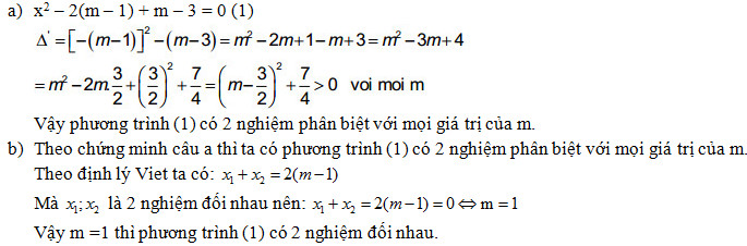 b. Tìm m để phương trình (1) có hai nghiệm đối nhau.