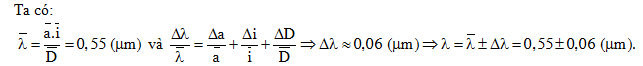Một học sinh làm thí nghiệm đo bước sóng ánh sáng bằng thí nghiệm giao thoa qua khe Yâng. Kết quả đo được khoảng cách hai khe a = (0,15
