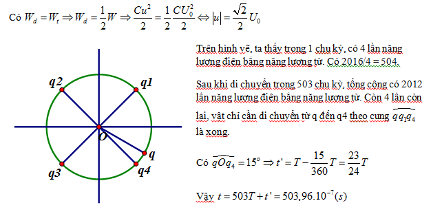 . Thời điểm lần thứ 2016 trong mạch có năng lượng điện trường bằng năng lượng từ trường là