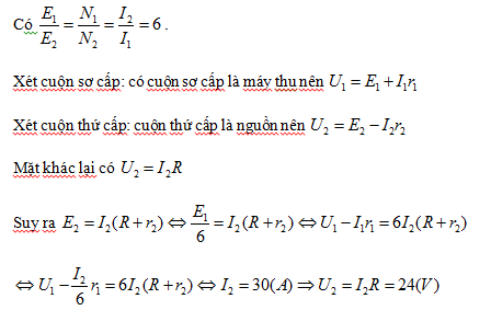 Một máy biến áp mà cuộn dây sơ cấp gồm vòng, điện trở cuộn sơ cấp là ; cuộn thứ