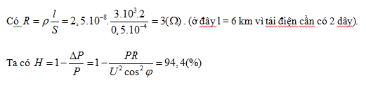 và có tiết diện 0,5cm2. Điện áp và công suất truyền đi ở trạm phát điện lần lượt là U = 6kV, P = 540kW. Hệ số công suất của mạch điện là 0,9. Hiệu suất truyền tải điện là