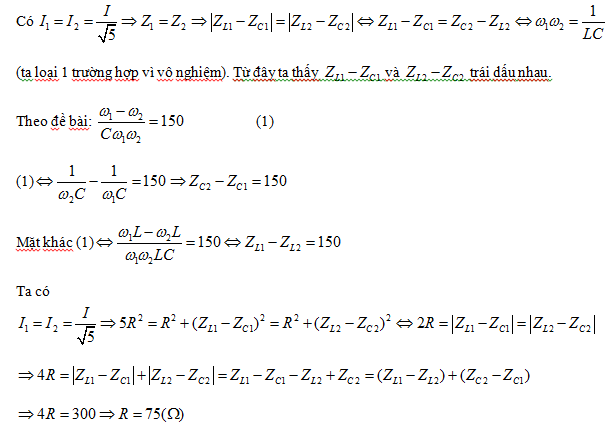Đặt điện áp xoay chiều có tần số w thay đổi được vào hai đầu mạch RLC nối tiếp. Khi w thay đổi thì cường độ hiệu dụng trong mạch đạt giá trị cực đại là I và khi có hai giá trị w1 và w2 thì giá trị cực đại của cường độ dòng điện tức thời trong mạch đều bằng