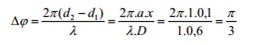 Trong thí nghiệm giao thoa Young với ánh sáng đơn sắc có bước sóng λ= 0,6μm , khoảng cách giữa hai khe F1, F2 là a = 1mm. Khe hẹp F cách đều hai khe và màn E đặt cách mặt phẳng chứa hai khe 1m. Tại điểm trên màn E cách vân sáng trung tâm 0,1 mm về phía F1 có độ lệch pha giữa hai sóng do hai khe F1, F2 truyền tới là: