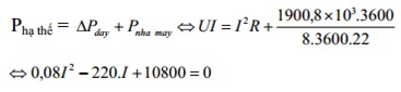 Một xưởng sản xuất hoạt động đều đặn và liên tục 8 giờ mỗi ngày, 22 ngày trong một tháng sử dụng điện năng lấy từ máy hạ áp có điện áp hiệu dụng ở cuộn thứ cấp là 220 V. Điện năng truyền đến xưởng trên một đường dây có điện trở tổng cộng Rd = 0,08 Ω. Trong một tháng, đồng hồ đo trong xưởng cho biết xưởng tiêu thụ 1900,8 số (1 số = 1 kWh). Coi hệ số công suất của mạch luôn bằng 1. Độ sụt áp trên đường dây tải bằng