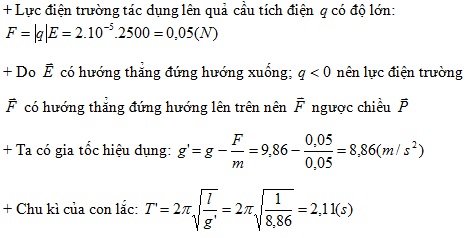 thẳng đứng hướng xuống, cường độ E = 25 V/ cm. Chu kì con lắc lúc này là