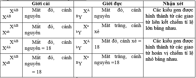 (1) Tất cả ruồi mắt đỏ, cánh nguyên đều là ruồi cái.