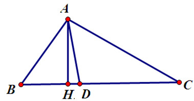 Cho tam giác ABC vuông tại A. Đường phân giác AD chia cạnh BC thành hai đoạn \(BD = 36 cm\) và \(CD = 60 cm.\) Kẻ đường cao AH của tam giác.