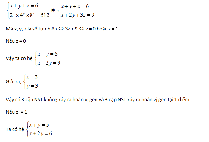 Sau một số đợt nguyên phân, một tế bào sinh dục của một loài đòi hỏi môi trường cung cấp 756 nhiễm sắc thể đơn. Các tế bào con đều trở thành tế bào sinh trứng. 1,5625% số trứng được thụ tinh tạo ra một hợp tử lưỡng bội. Nếu các cặp NST đều có cấu trúc khác nhau, quá trình giảm phân tạo ra 512 kiểu giao tử thì hình thức trao đổi đoạn đã xảy ra là :