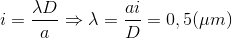 Trong thí nghiệm Y-âng về giao thoa với ánh sáng đơn sắc, khoảng cách giữa hai khe sáng là 3mm khoảng cách từ mặt phẳng chứa hai khe đến màn quan sát là 3m. Trên màn qua sát, khoảng cách giữa hai vân sáng liên tiếp là 0,5 mm. Bước sóng của ánh sáng dùng trong thí nghiệm là