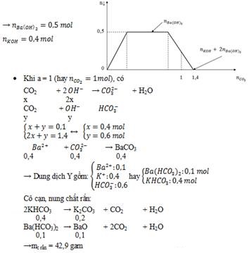 Hấp thụ hết a mol khí CO2 vào dung dịch chứa hỗn hợp KOH và Ba(OH)2. Kết quả thí nghiệm