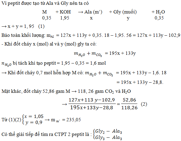 Cho hỗn hợp M chứa hai peptit X và Y đều tạo bởi glyxin và alanin. Biết rằng tổng số nguyên