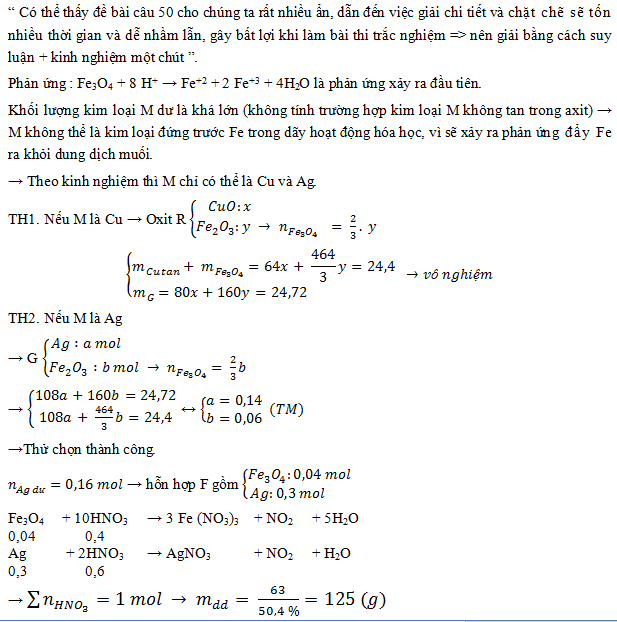 Cho 41,68 gam hỗn hợp F gồm Fe3O4 và kim loại M vào dung dịch HNO3 50,4% đun nóng khuấy đều hỗn