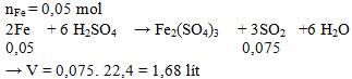 Cho 2,8 gam Fe kim loại tác dụng hoàn toàn với dung dịch H2SO4 đặc nóng (dư), thu được V lít SO2