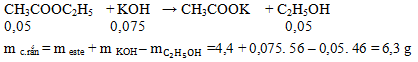 Xà phòng hóa 4,4 gam các este CH3COOC2H5 bằng 75 ml dung dịch KOH 1M, cô cạn dung dịch sau phản ứng