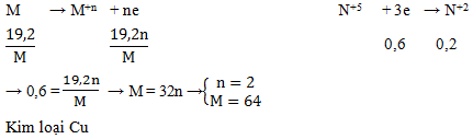 Cho 19,2 gam một kim loại tác dụng với dung dịch HNO3, thu được 0,2 mol khí NO (sản phẩm khử duy nhất). Kim loại m là
