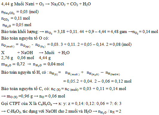 -Nung nóng hai muối này trong oxi dư, sau khi phản ứng xảy ra hoàn toàn thu được 3,18 gam Na2CO3, 2,464 lít khí CO2 (đktc) và 0,9 gam nước.