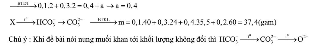 Dung dịch X chứa 0,1 mol ; 0,3 mol ; 0,4 mol và a mol . Đun dung dịch X đến cô cạn thu được muối