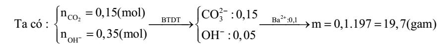 Hấp thụ hoàn toàn 3,36 lít khí CO2 (đktc) vào dung dịch chứa 0,15 mol NaOH và 0,1 mol Ba(OH)2, thu được m gam kết tủa . Giá trị của m là