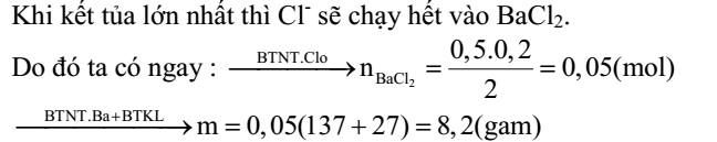 Hòa tan hoàn toàn m gam hỗn hợp Al và Ba với số mol bằng nhau vào nước được dung dịch X. Cho từ từ dung dịch HCl 0,5M vào dung dịch X đến khi lượng kết tủa đạt giá trị lớn nhất thấy dùng hết 200 mL. Giá trị của m bằng