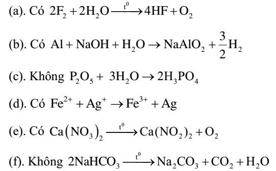 Xét các phản ứng sau: (a) F2 + H2O (hơi) (b) Al + dung dịch NaOH