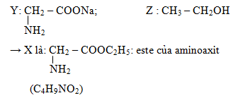 Khi đun hợp chất X với dung dịch NaOH thu được hỗn hợp 2 chất hữu cơ Y ( C2H4NNaO2) và Z (